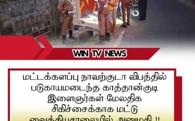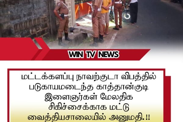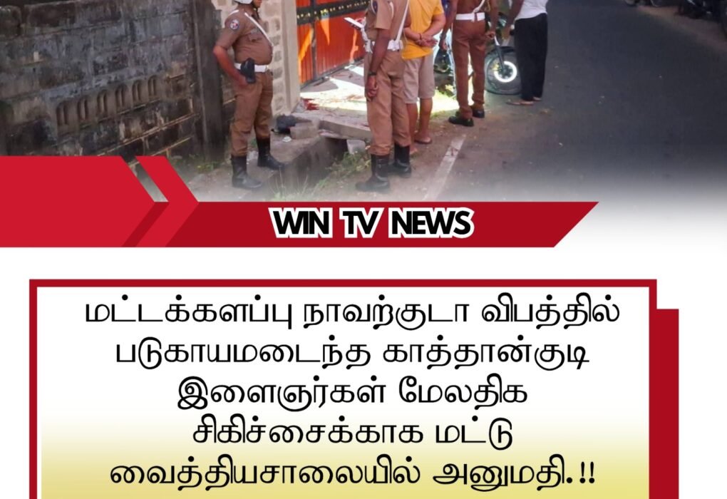 மட்டக்களப்பு நாவற்குடா விபத்தில் படுகாயமடைந்த காத்தான்குடி இளைஞர்கள் மேலதிக சிகிச்சைக்காக மட்டு வைத்தியசாலையில் அனுமதி.!!இன்று (15) மட்டக்களப்பு நாவற்குடா உள்வீதியொன்றில் தேவாலயம் அருகில் இடம்பெற்ற விபத்தில் சிக்கி காத்தான்குடியைச் சேர்ந்த இளைஞர்கள் இருவர் படுகாயமடைந்துள்ளனர்.இச் சம்பவம் தொடர்பில் மேலும் தெரிய வருகையில் காத்தான்குடியைச் சேர்ந்த நான்கு இளைஞர்கள் இரண்டு மோட்டார்சைக்கிள்களில் நாவற்குடா உள் வீதியொன்றினூடாக அதிவேகமாக பயணித்துள்ள நிலையில் அதில் ஒரு மோட்டார்சைக்கிள் வேகக்கட்டுப்பாட்டை இழந்து வீதியை விட்டு விலகி வீதியோரமிருந்த மதிலுடன் மோதிய நிலையில் மோட்டார்சக்கிளில்…
