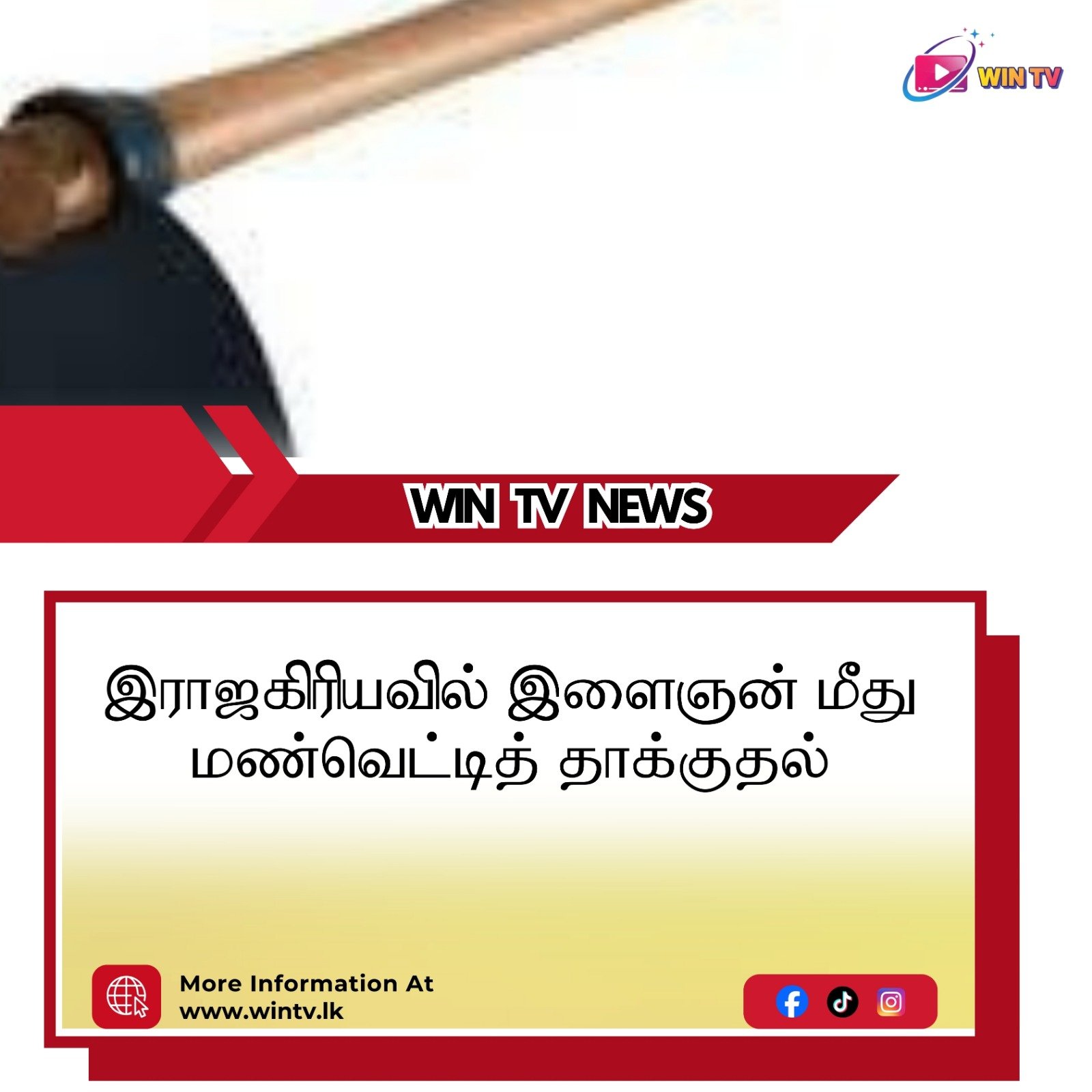 இராஜகிரியவில் இளைஞன் மீது மண்வெட்டித் தாக்குதல்..