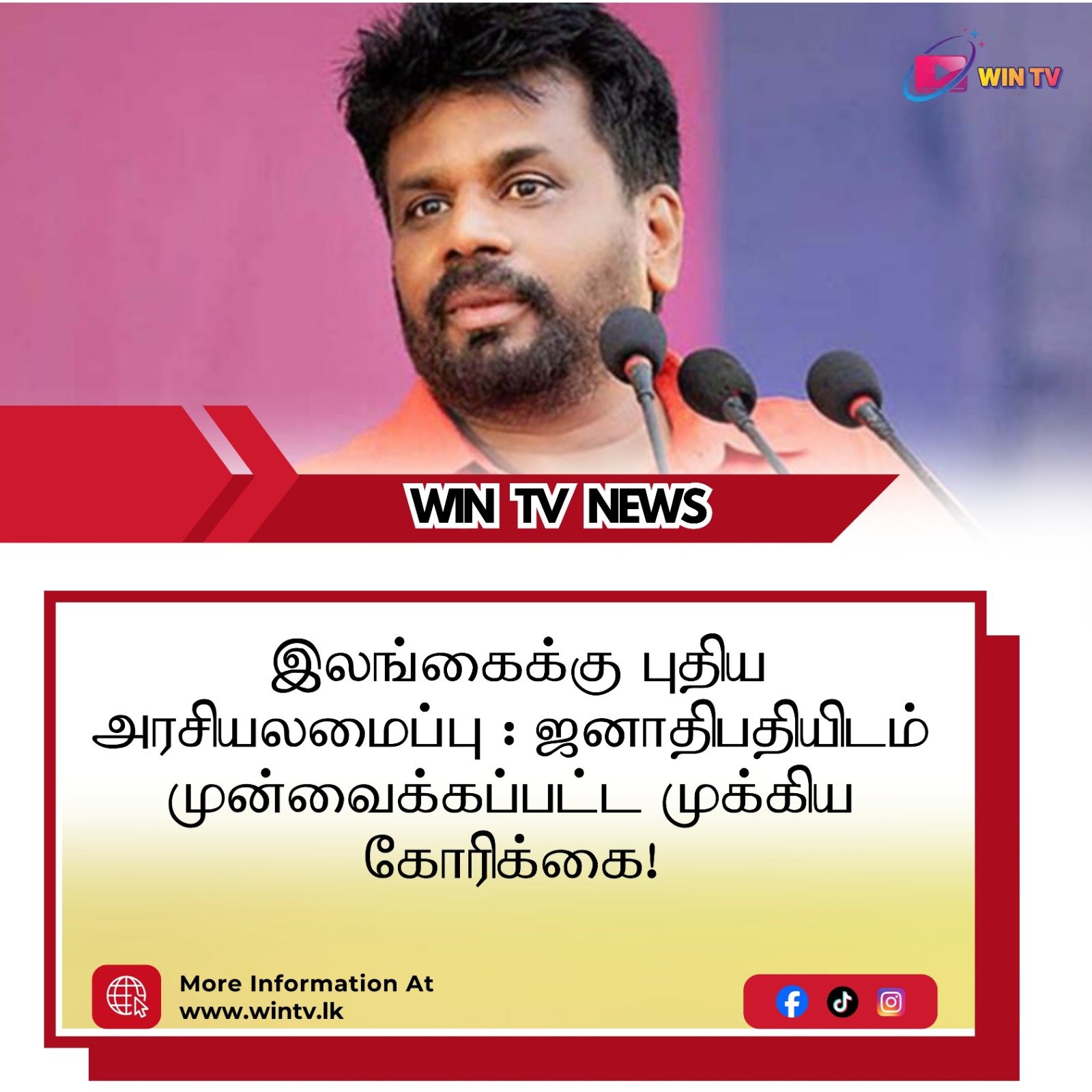 இலங்கைக்கான புதிய அரசியலமைப்பொன்றை வடிவமைக்கும் செயற்பாட்டின் போது அனைவரையும் உள்ளடக்கிய, வெளிப்படையான மற்றும் பங்கேற்பு செயல்முறையை உறுதி செய்யப்பட வேண்டும் என ஜனாதிபதி அநுரகுமார திசாநாயக்கவிடம் கோரிக்கை விடுக்கப்பட்டுள்ளது. One Text Initiative அரசியலமைப்பு சீர்திருத்த உரையாடலுக்கான இயக்கத்தினால், ஜனாதிபதிக்கு அனுப்பி வைக்கப்பட்டுள்ள கடிதத்தில் இந்த கோரிக்கை முன்வைக்கப்பட்டுள்ளது. மறுமலர்ச்சி யுகத்தை கட்டியெழுப்புவதற்காக ஒரு புதிய அரசியலமைப்பை நிறைவேற்றிக்கொள்ளல் அத்தியாவசியமான ஒரு முன்தேவை என்பதையும் தமது இயக்கம் உறுதியாக நம்புவதாகவும், ஜனாதிபதிக்கு அனுப்பியுள்ள கடிதத்தில் தெரிவிக்கப்பட்டுள்ளது. எனினும், ஒரு புதிய அரசியலமைப்பை நிறைவேற்றிக் கொள்ளல் இலங்கைக்கு ஒரு முக்கியமான சவால் எனவும் அந்தக் கடிதத்தில் குறிப்பிடப்பட்டுள்ளது. எனவே, இந்த முயற்சியில், அனைவரையும் உள்ளடக்கி, அனைவரினதும் பங்கேற்பை உறுதிசெய்யும் சீர்திருத்தச் செயல்முறையை உறுதி செய்வதும் அவசியம் எனவும் தெரிவிக்கப்பட்டுள்ளது. இந்த நிலையில், மக்களால் அங்கீகரிக்கப்பட்ட அரசியலமைப்புசார் கோட்பாடுகளின் அடிப்படையில் ஒரு சட்டமூலத்தை வரைய வேண்டும் எனவும், One Text Initiative அரசியலமைப்பு சீர்திருத்த உரையாடலுக்கான இயக்கம், ஜனாதிபதியிடம் கோரிக்கை விடுத்துள்ளது.