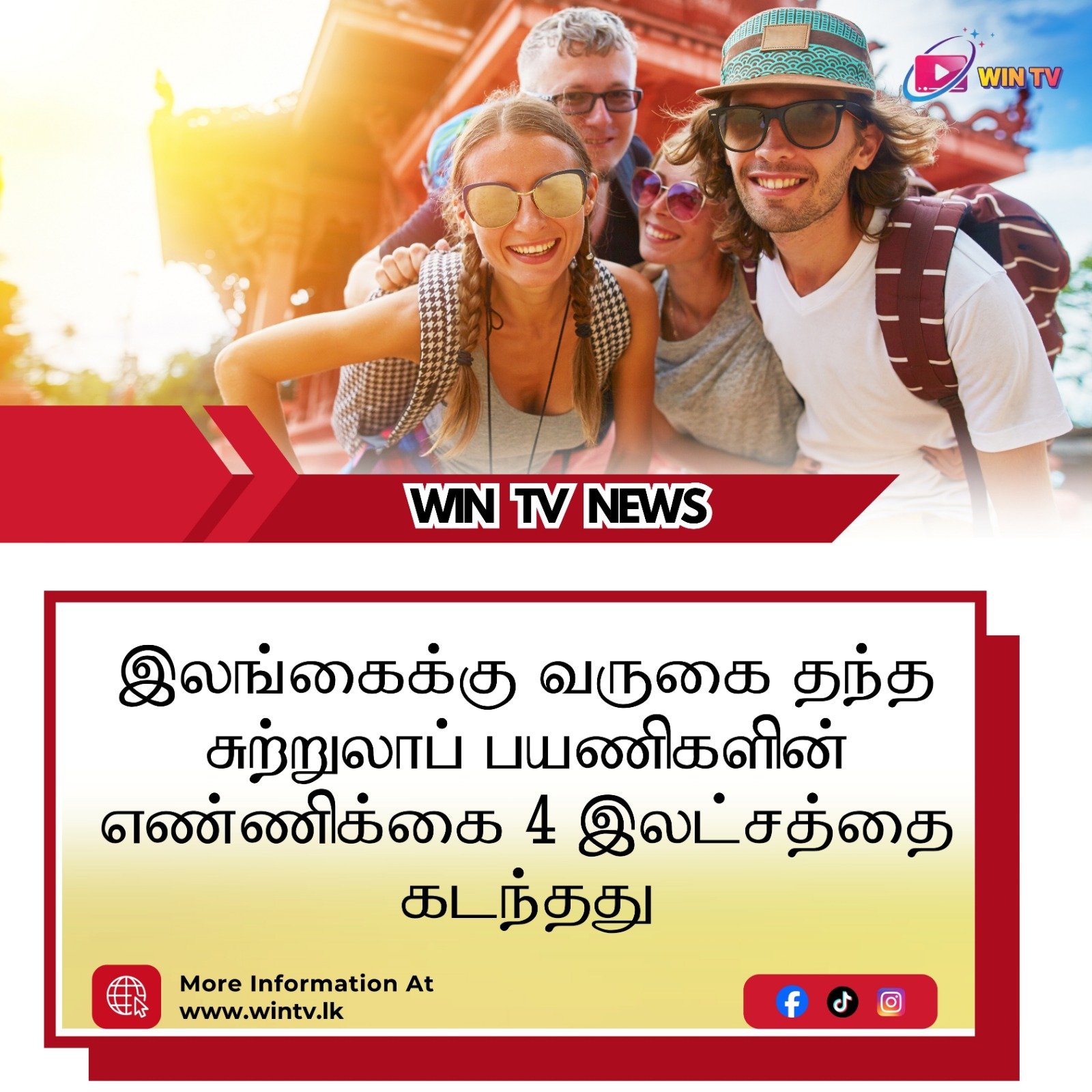 இலங்கைக்கு வருகை தந்த சுற்றுலாப் பயணிகளின் எண்ணிக்கை 4 இலட்சத்தை கடந்தது….