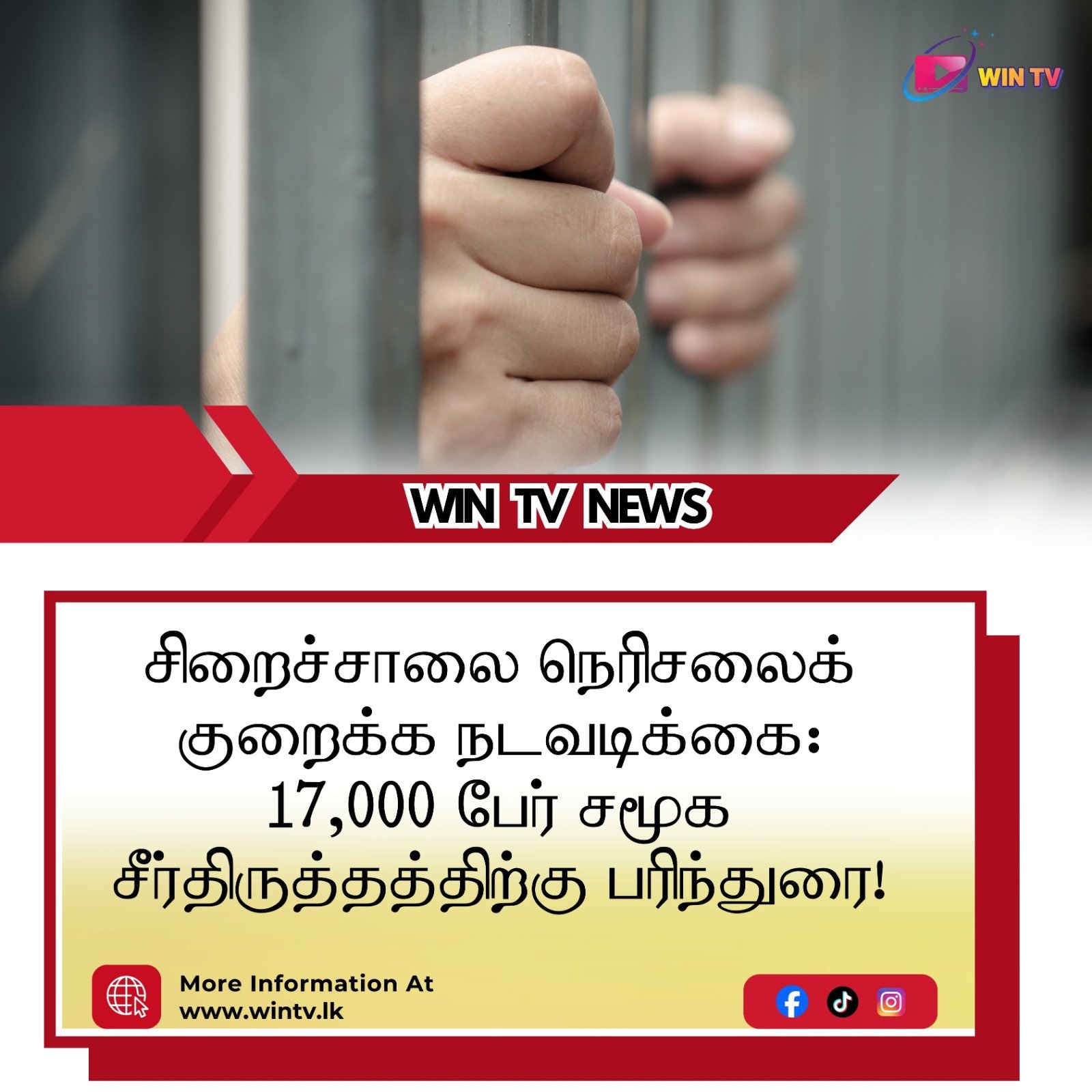 சிறைச்சாலை நெரிசலைக் குறைக்க நடவடிக்கை: 17,000 பேர் சமூக சீர்திருத்தத்திற்கு பரிந்துரை!