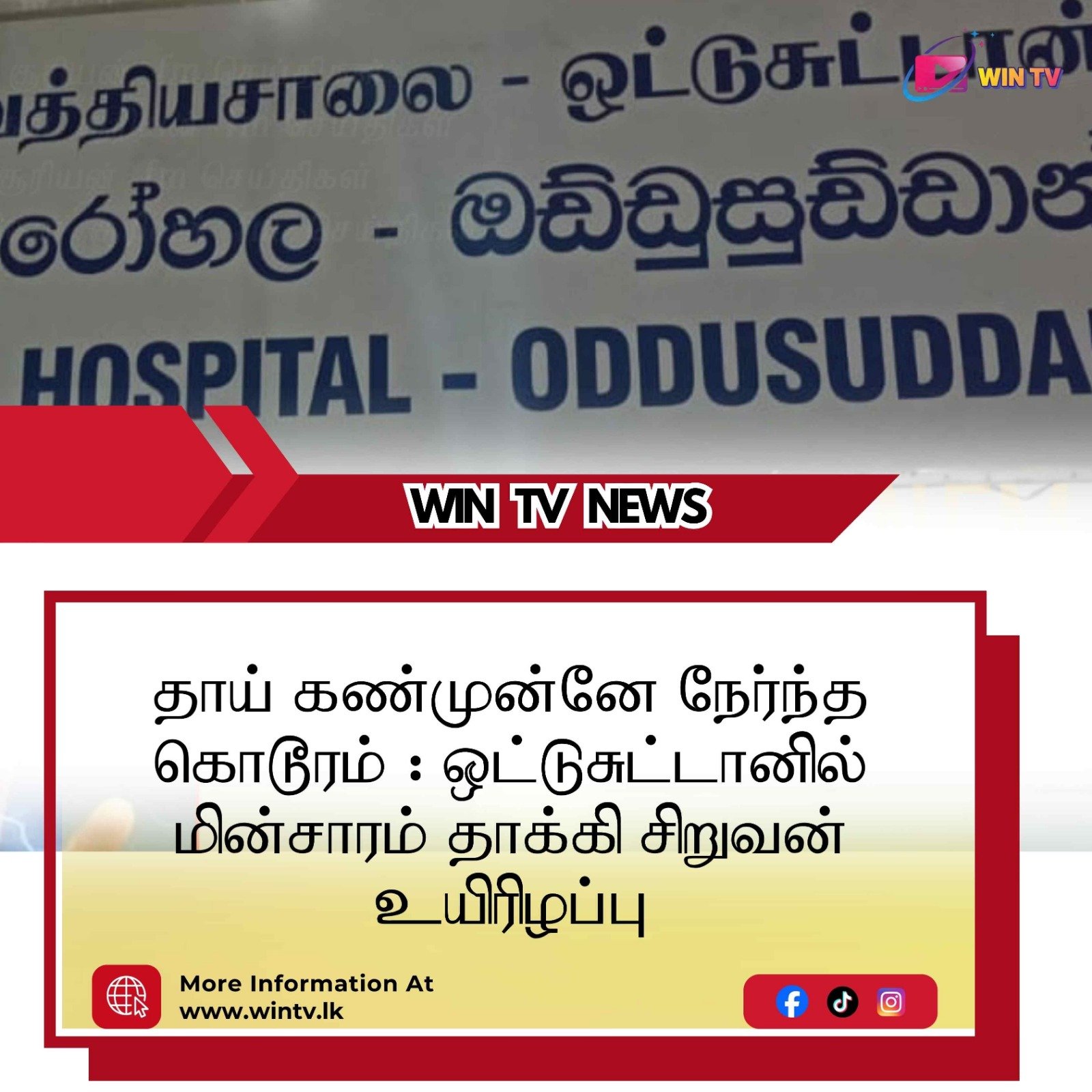 தாய் கண்முன்னே நேர்ந்த கொடூரம் : ஒட்டுசுட்டானில் மின்சாரம் தாக்கி சிறுவன் உயிரிழப்பு….