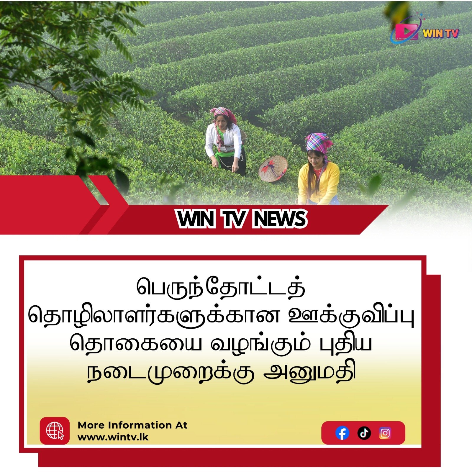 பெருந்தோட்டத் தொழிலாளர்களின் வாழ்க்கைத்தரத்தை மேம்படுத்துவதற்காக 2026 ஆம் ஆண்டு பாதீட்டில் முன்மொழியப்பட்ட நிவாரணங்களை வழங்குவதற்கான புதிய நடைமுறைக்கு அமைச்சரவை தனது அங்கீகாரத்தை வழங்கியுள்ளது.பெருந்தோட்டத் தொழிலாளர்களுக்கு அவர்களின் தொழிலுக்கேற்ற நியாயமான வருமானத்தை உறுதிப்படுத்தும் நோக்கில் இந்தத் திட்டம் வகுக்கப்பட்டுள்ளது.அதன்படி, தற்போது 1350 ரூபாவாக உள்ள அவர்களின் நாளாந்த ஆகக்குறைந்த வேதனத்தை 1,550 ரூபா வரை அதிகரிக்க வேண்டும் எனவும் தொழிலாளர்களின் நாளாந்த வருகையை ஊக்குவிப்பதற்காக மேலதிகமாக 200 ரூபா ஊக்கத்தொகையாக வழங்குவதற்குமான யோசனை முன்மொழியப்பட்டது.இதன் மூலம் தொழிலாளர் ஒருவர் நாளொன்றுக்கு மொத்தமாக 1,750 ரூபா வரை வருமானத்தைப் பெற வழிவகை செய்யப்பட்டுள்ளது.