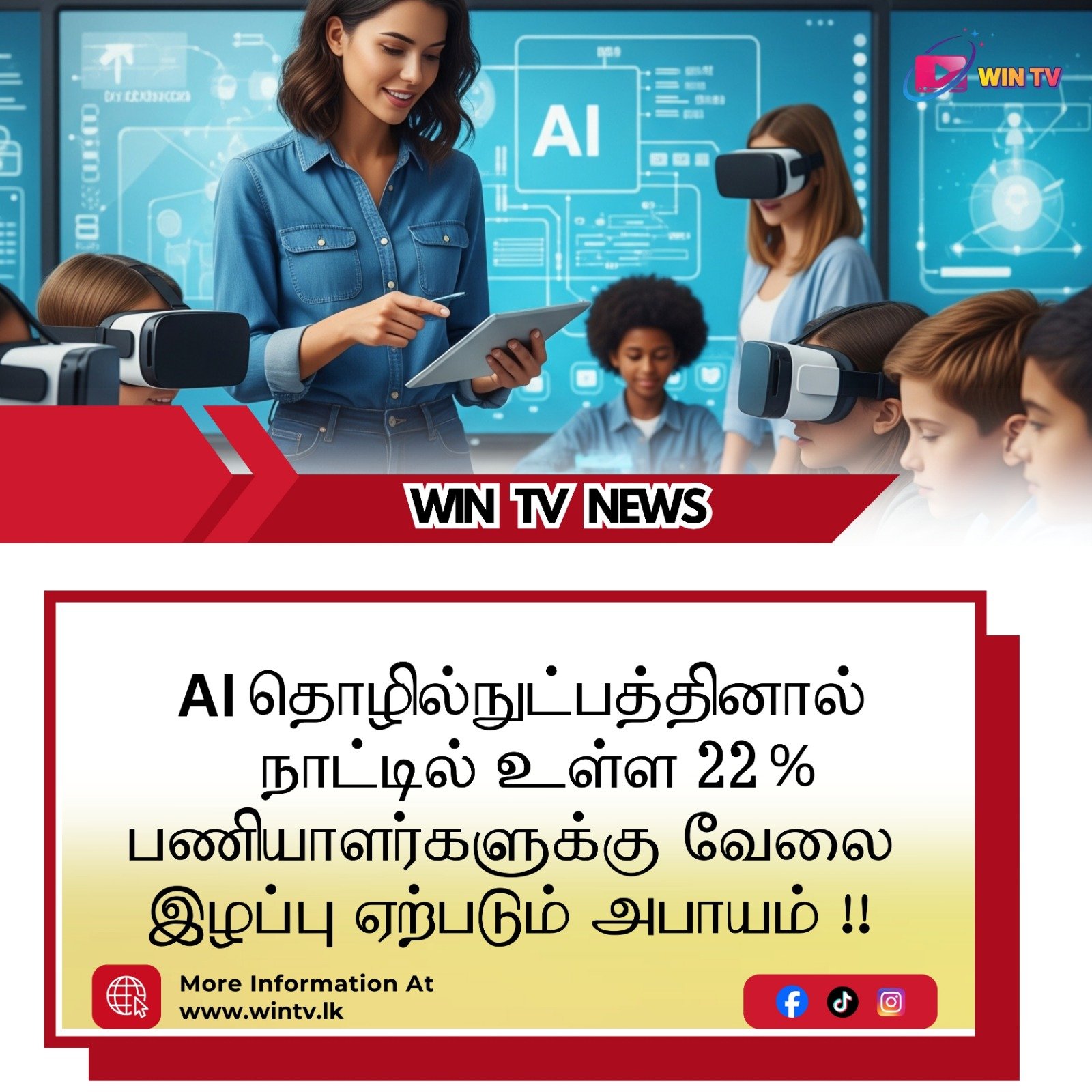 AI தொழில்நுட்பத்தினால் நாட்டில் உள்ள 22% பணியாளர்களுக்கு வேலை இழப்பு ஏற்படும் அபாயம் !!